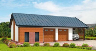 G281 garaż dwustanowiskowy z pomieszczeniem gospodarczym i wiatą
