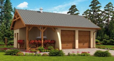 G42 garaż dwustanowiskowy z pomieszczeniem gospodarczym i altaną ogrodową z grilem