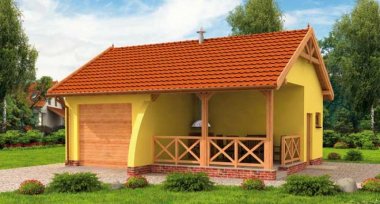 G264 garaż jednostanowiskowy z pomieszczeniem gospodarczym i werandą