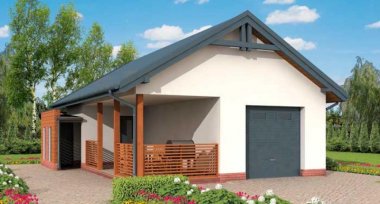 G285 garaż jednostanowiskowy z pomieszczeniem gospodarczym i werandą