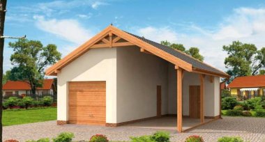 G31m garaż jednostanowiskowy z wiatą i pomieszczeniem gospodarczym
