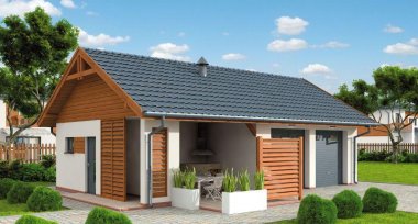 G321 garaż dwustanowiskowy z pomieszczeniem gospodarczym i altaną