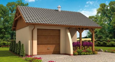 G41 garaż jednostanowiskowy z pomieszczeniem gospodarczym i altaną ogrodową z grilem.