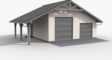 G6 szkielet drewniany, garaż dwustanowiskowy z wiatą garażową jednostanowiskową