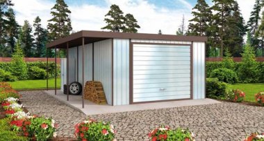 GB10 projekt garażu blaszanego jednostanowiskowego z wiatą