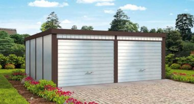 GB26 projekt garażu blaszanego dwustanowiskowego z pomieszczeniem gospodarczym