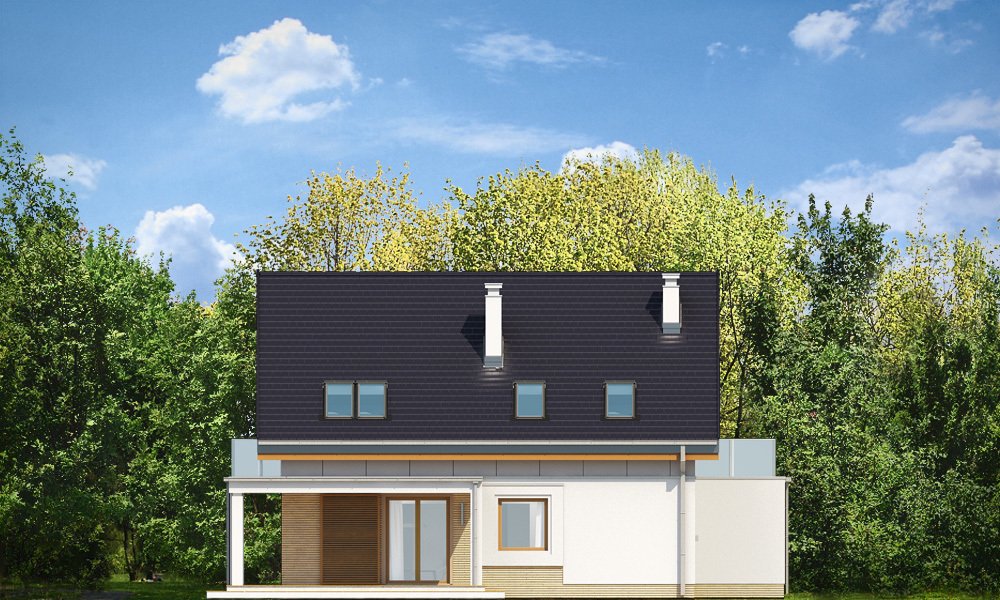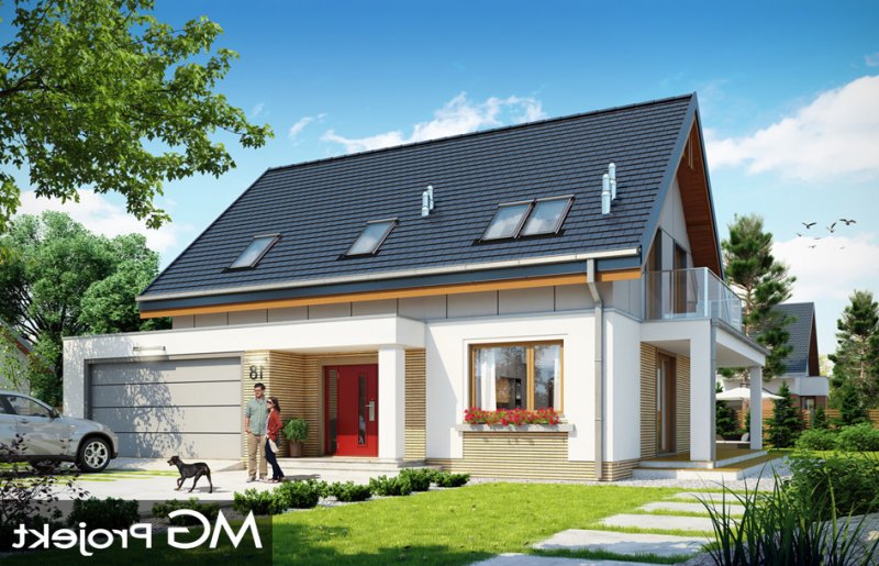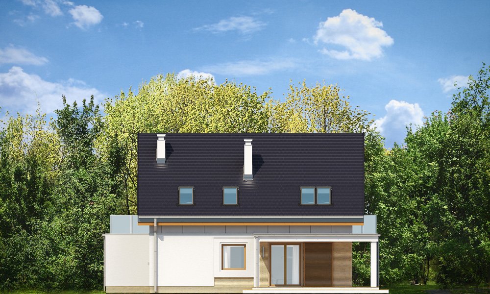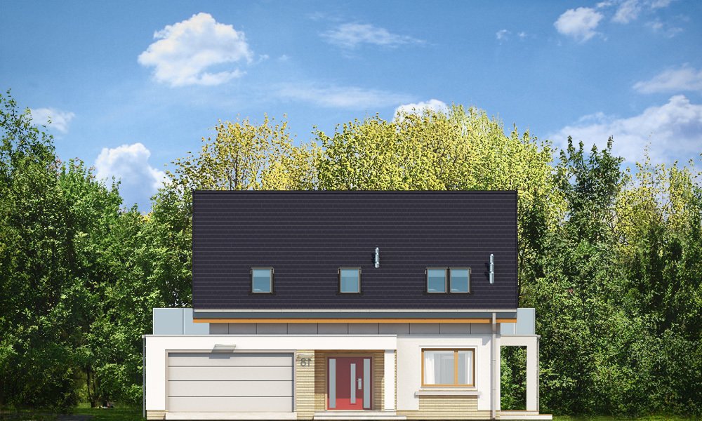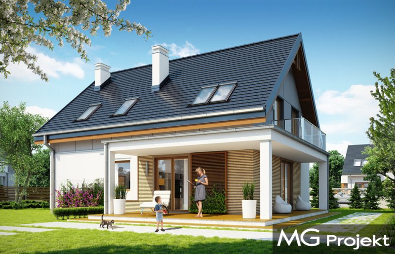 Albatros 2 jest wersją wariantową popularnego projektu „Albatros” z podwójnym garażem. Jest to prosty w budowie, niedrogi dom z poddaszem użytkowym dla 4-5cioosobowej rodziny. Bryła budynku została zaprojektowana na planie prostokąta - do głównej bryły dobudowany jest częściowo wchodzący w nią garaż na dwa auta. Poddasze wieńczy symetryczny dwuspadowy dach. Projekt podporządkowano połączeniu ekonomicznych i funkcjonalnych rozwiązań, z nowoczesną i ciekawą estetyką budynku. Dom ma w sobie „to coś” : ciekawie dobrane materiały, dobre proporcje brył, właściwą wielkość okien, no i przede wszystkim – funkcjonalne, rozsądnie zaplanowane wnętrze. Parter domu, to przestrzeń dzienna, z wygodnym salonem, centralnym holem z ozdobnymi schodami, częściowo otwartą na salon kuchnią, oraz dodatkowy pokój - gabinet lub sypialnia gościnna i część gospodarcza, czyli garaż i kotłownia. Na poddaszu, dzięki wysokim ściankom kolankowym, mieszczą się trzy przestronne sypialnie, w tym sypialnia rodziców z osobną łazienka i garderobą. Dodatkowo przewidziano tu też miejsce na pralnię – ewentualnie schowek. „Albatros” mimo niewielkiej powierzchni jest przestronny i wygodny i zapewni komfortowe warunki do życia nawet licznej rodzinie. Energooszczędne rozwiązania – dobre docieplenia, zwarta bryła budynku - pozwolą ograniczyć koszty przyszłej eksploatacji, a prostota konstrukcji domu zapewni mniej stresów podczas budowy. Zapraszamy.