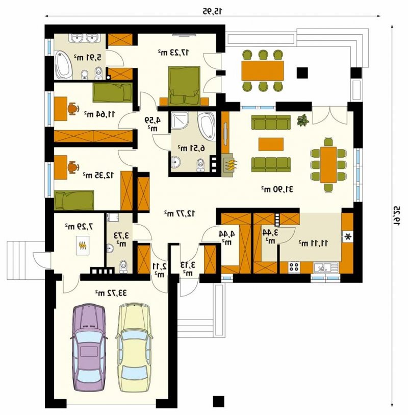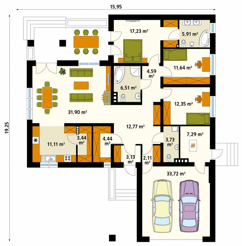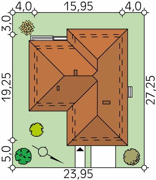 - Min. wymiary działki 23.95x27.25 m