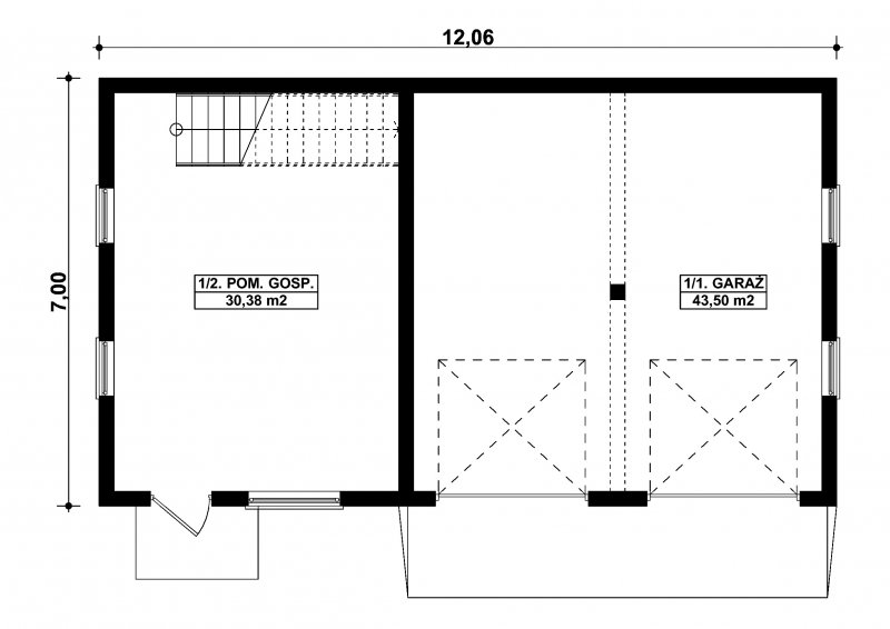 Projekt garażu dwustanowiskowego, piętrowego, przeznaczonego dla samochodów osobowych z dwoma pomieszczeniami gospodarczymi. Do projektu dołączone jest zestawienie: stali, więźby dachowej oraz stolarki drzwiowej i okiennej, jak również bezpłatna zgoda na dokonywanie zmian .