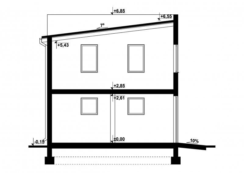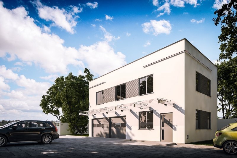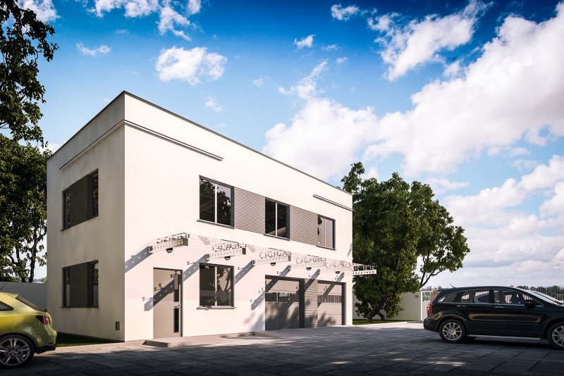 Budynek wykonany w technologii tradycyjnej. Ściany murowane z bloczków z betonu komórkowego grubości 24cm i 12cm. Bramy o wymiarach 2,50x2,20m. Strop gęstożebrowy „TERIVA 4,0”. Więźba dachowa jednospadowa, stalowa, pokryta płytą warstwową.