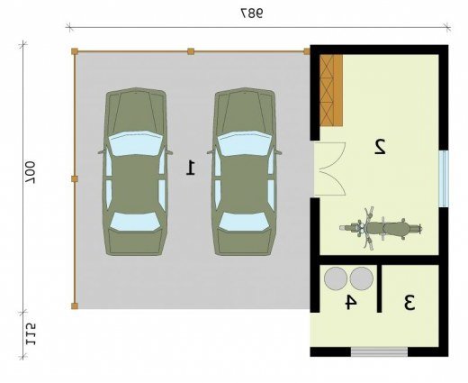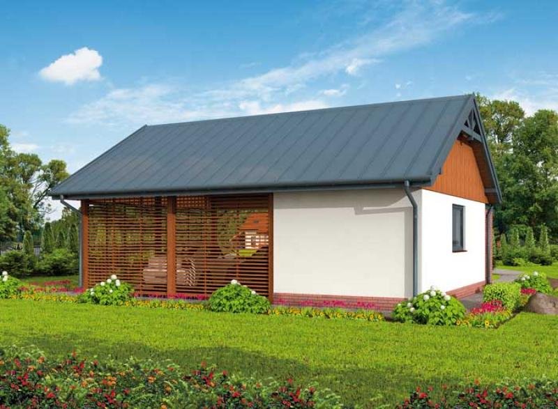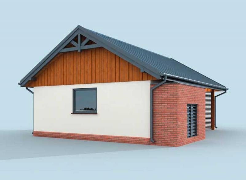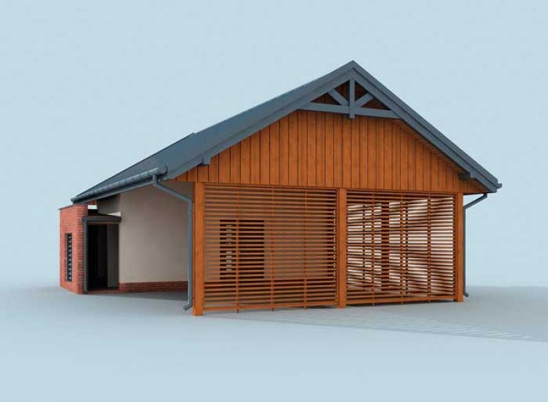 Wiata garażowa dwustanowiska z pomieszczeniem gospodarczym, z składem na drewno i odpady. Projekt składa się z części architektonicznej, konstrukcyjnej i wewnętrznej instalacji elektrycznej. W projekcie załączone są podstawowe zestawienie stali, drewna i stolarki okienno-drzwiowej. Do projektu dołączamy bezpłatną zgodę na wprowadzenie zmian, oświadczenie projektantów o wykonaniu projektu zgodnie z obowiązującymi normami i przepisami oraz kserokopie uprawnień projektantów wraz z aktualnym wpisem do izby. W przypadku zamówienia projektu w technologii lekkiej, drewnianej konstrukcji szkieletowej, powierzchnia użytkowa budynku jest o około 7% większa.