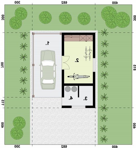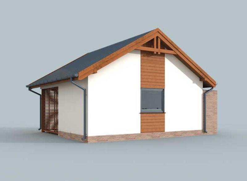 Wiata garażowa jednostanowiskowa z pomieszczeniem gospodarczym, składem na drewno i odpady. Projekt składa się z części architektonicznej, konstrukcyjnej i wewnętrznej instalacji elektrycznej. W projekcie załączone są podstawowe zestawienie stali, drewna i stolarki okienno-drzwiowej. Do projektu dołączamy bezpłatną zgodę na wprowadzenie zmian, oświadczenie projektantów o wykonaniu projektu zgodnie z obowiązującymi normami i przepisami oraz kserokopie uprawnień projektantów wraz z aktualnym wpisem do izby. W przypadku zamówienia projektu w technologii lekkiej, drewnianej konstrukcji szkieletowej, powierzchnia użytkowa budynku jest o około 7% większa.
