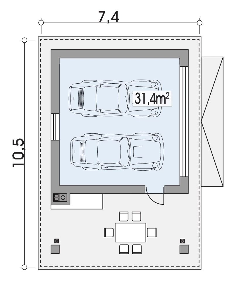 - Powierzchnia zabudowy 31.40 m²