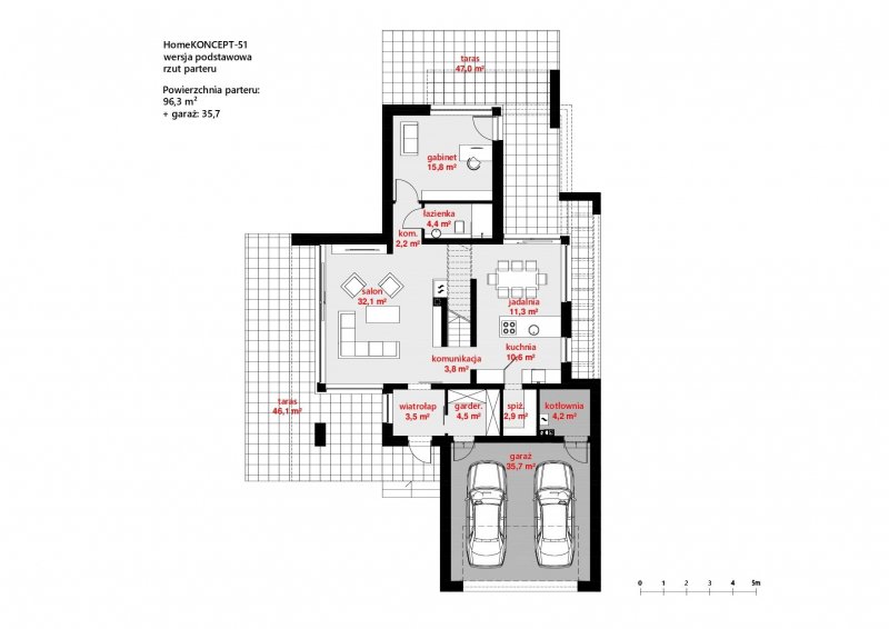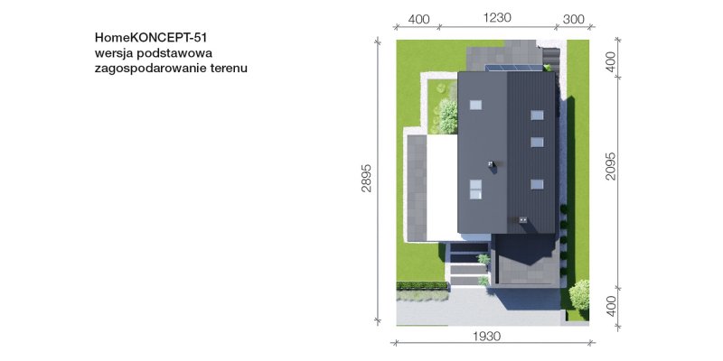 - Min. wymiary działki 19.30x28.95 m