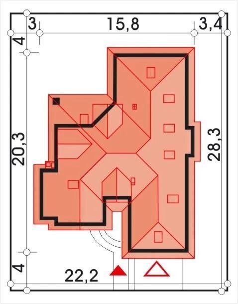- Min. wymiary działki 22.30 m