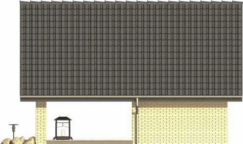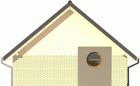 Propozycja niewielkiego budynku z dachem dwuspadowym, ustawionego szczytem do frontu. Uwagę zwraca współczesny wygląd zewnętrzny, dzięki któremu będzie doskonale komponować się w prawie każdym otoczeniu. Praktycznym i eleganckim rozwiązaniem jest obłożona płytkami strefa wejściowa.