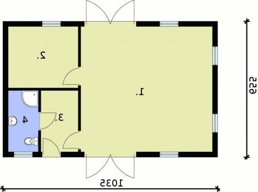Budynek gospodarczy z trzema pomieszczeniami i łazienką.