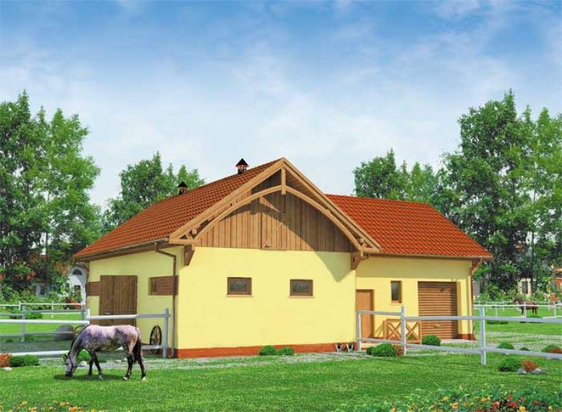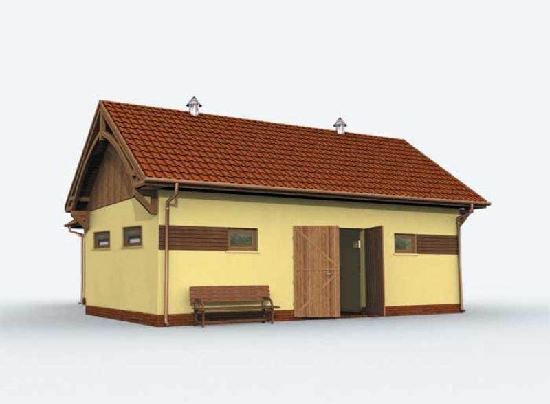 Budynek gospodarczy z czterema pomieszczeniami i łazienką.