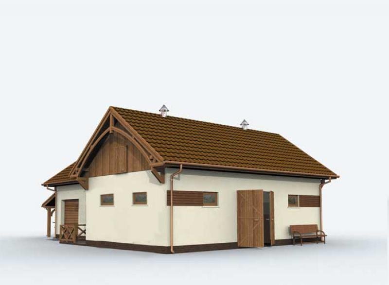 Budynek gospodarczy z czterema pomieszczeniami , łazienką i wiatą.
