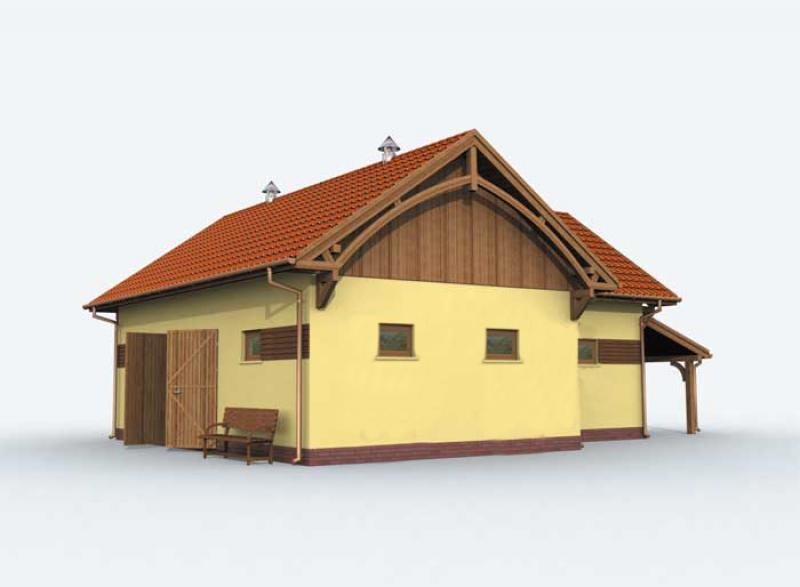 Budynek gospodarczy z trzema pomieszczeniami , łazienką i wiatą.