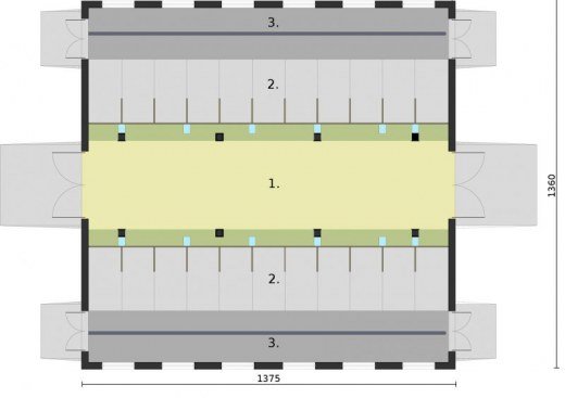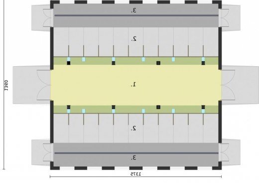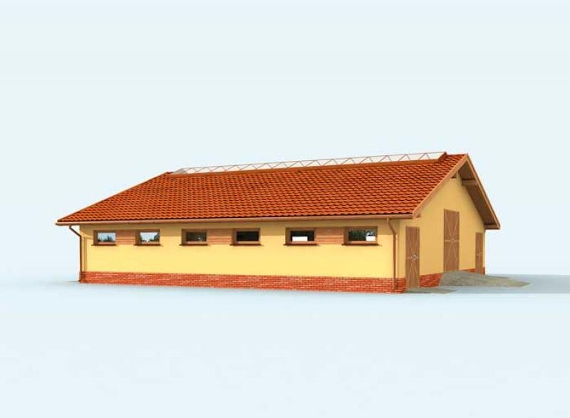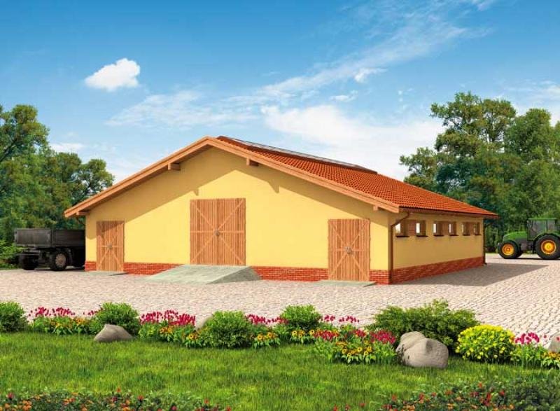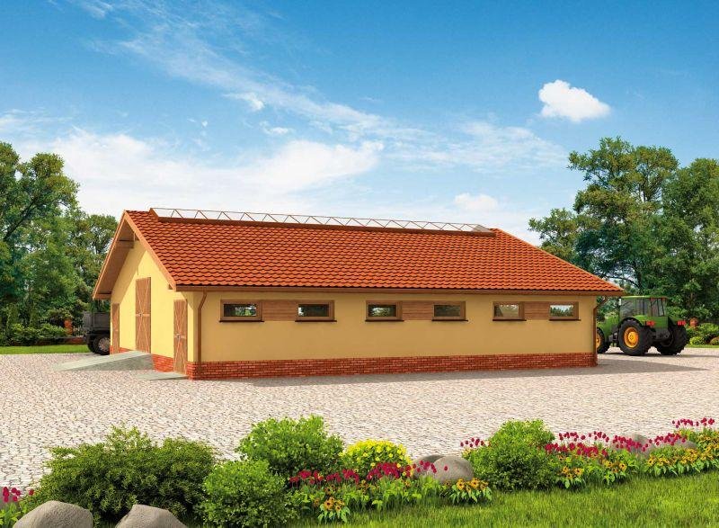 Budynek inwentarski - obora dla 22 krów mlecznych, uwięziowa (stanowiskowa, na płytkiej ściółce, wolnostojąca, parterowa, niepodpiwniczona). Wieloletnie przygotowania dały efekt finalny w postaci projektu budynku inwentarskiego. Wbrew pozorom obora, podobnie jak projekt domu mieszkalnego, wymaga wielu przygotowań oraz wiedzy na temat projektów tego typu. Do obory głównym wejściem można swobodnie wjechać ciągnikiem w celu podania paszy. Żadnych problemów nie sprawia też wywóz gnojownika. Można go zbierać mechanicznie lub ręcznie. Specjalnie do tego celu wyposażono oborę w osobne wejścia umożliwiające usunięcie nieczystości. Racjonalna gospodarka przestrzenią, ułatwienia pozwalające komfortowo oporządzać zwierzęta - to cechy tego projektu. Projekt składa się z części architektonicznej, konstrukcyjnej i wewnętrznej instalacji elektrycznej. W projekcie załączone są podstawowe zestawienie stali, drewna i stolarki okienno-drzwiowej. Do projektu dołączamy bezpłatną zgodę na wprowadzenie zmian, oświadczenie projektantów o wykonaniu projektu zgodnie z obowiązującymi normami i przepisami oraz kserokopie uprawnień projektantów wraz z aktualnym wpisem do izby. W przypadku zamówienia projektu w technologii lekkiej, drewnianej konstrukcji szkieletowej, powierzchnia użytkowa budynku jest o około 7% większa.