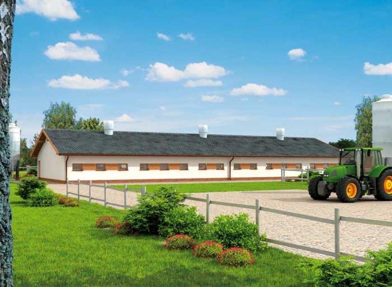 Budynek inwentarski - tuczarnia Projekt składa się z części architektonicznej, konstrukcyjnej i wewnętrznej instalacji elektrycznej. W projekcie załączone są podstawowe zestawienie stali, drewna i stolarki okienno-drzwiowej. Do projektu dołączamy bezpłatną zgodę na wprowadzenie zmian, oświadczenie projektantów o wykonaniu projektu zgodnie z obowiązującymi normami i przepisami oraz kserokopie uprawnień projektantów wraz z aktualnym wpisem do izby. W przypadku zamówienia projektu w technologii lekkiej, drewnianej konstrukcji szkieletowej, powierzchnia użytkowa budynku jest o około 7% większa.