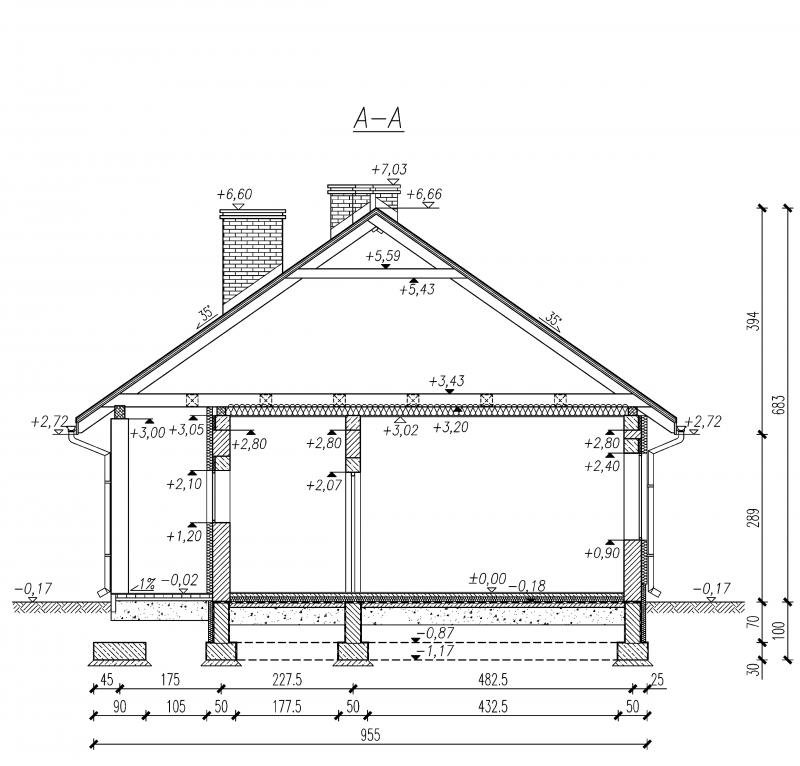 - ściany wewnętrzne nośne murowane grubości 25cm.