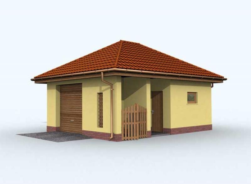 Budynek gospodarczy, wolnostojący. Projekt składa się z części architektonicznej, konstrukcyjnej i wewnętrznej instalacji elektrycznej. W projekcie załączone są podstawowe zestawienie stali, drewna i stolarki okienno-drzwiowej. Do projektu dołączamy bezpłatną zgodę na wprowadzenie zmian, oświadczenie projektantów o wykonaniu projektu zgodnie z obowiązującymi normami i przepisami oraz kserokopie uprawnień projektantów wraz z aktualnym wpisem do izby. W przypadku zamówienia projektu w technologii lekkiej, drewnianej konstrukcji szkieletowej, powierzchnia użytkowa budynku jest o około 7% większa.