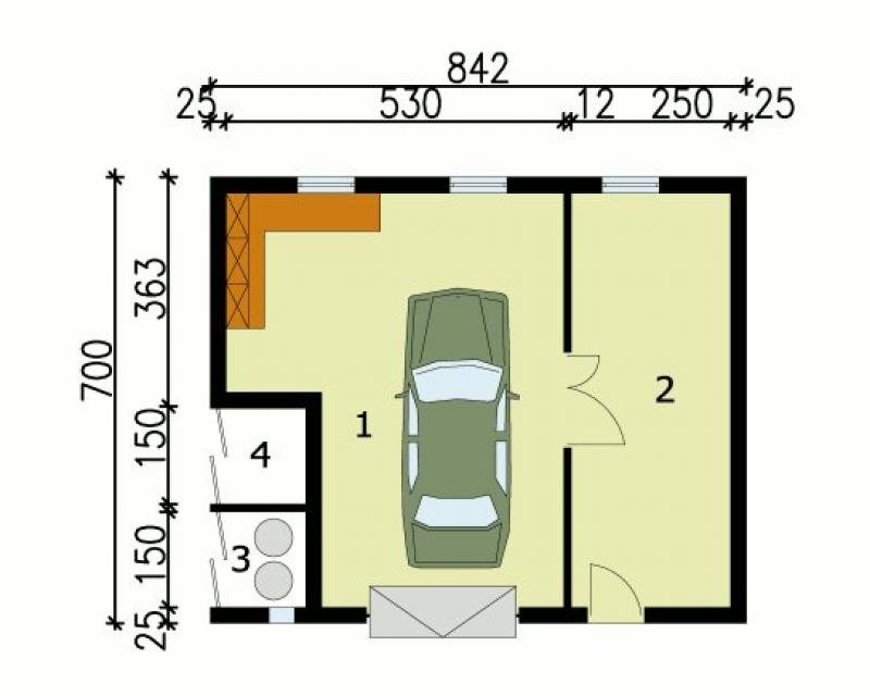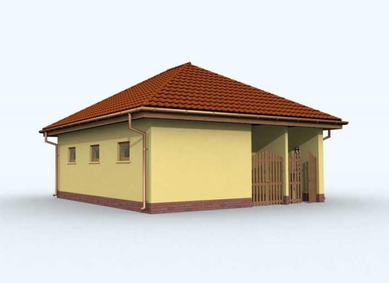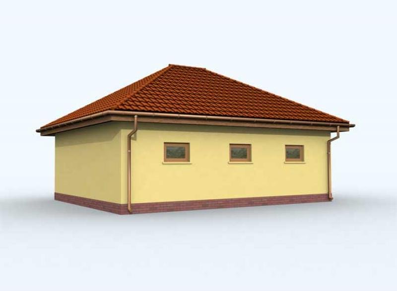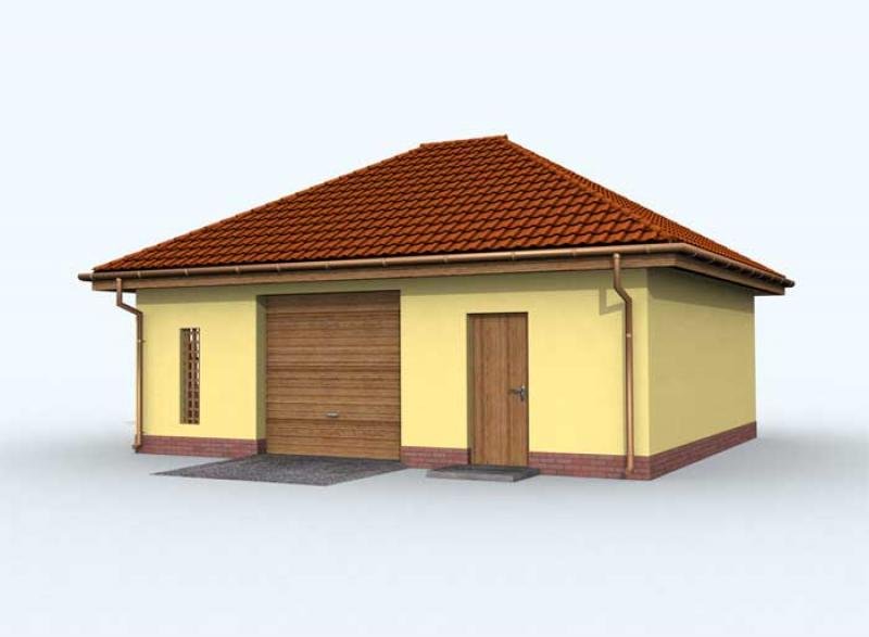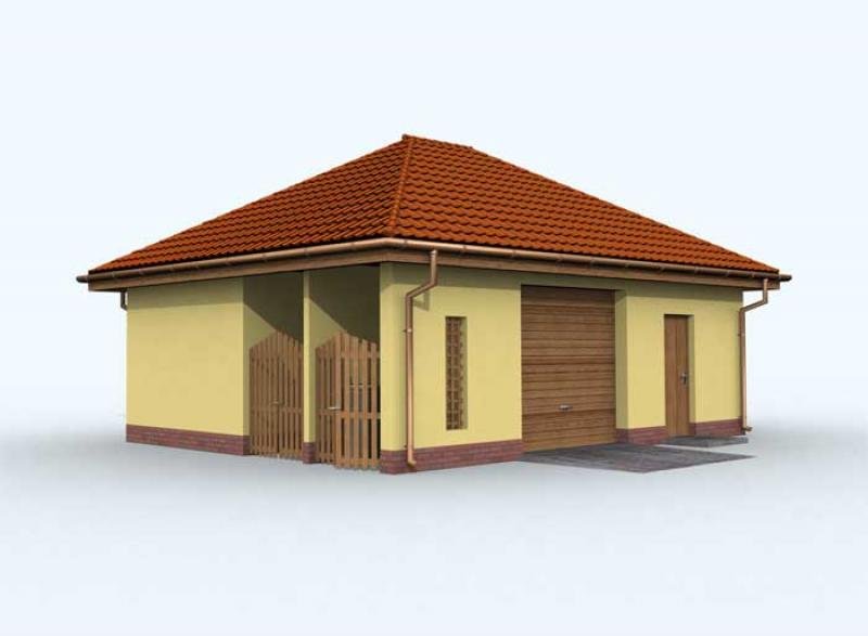 Budynek gospodarczy, wolnostojący. Projekt składa się z części architektonicznej, konstrukcyjnej i wewnętrznej instalacji elektrycznej. W projekcie załączone są podstawowe zestawienie stali, drewna i stolarki okienno-drzwiowej. Do projektu dołączamy bezpłatną zgodę na wprowadzenie zmian, oświadczenie projektantów o wykonaniu projektu zgodnie z obowiązującymi normami i przepisami oraz kserokopie uprawnień projektantów wraz z aktualnym wpisem do izby. W przypadku zamówienia projektu w technologii lekkiej, drewnianej konstrukcji szkieletowej, powierzchnia użytkowa budynku jest o około 7% większa.