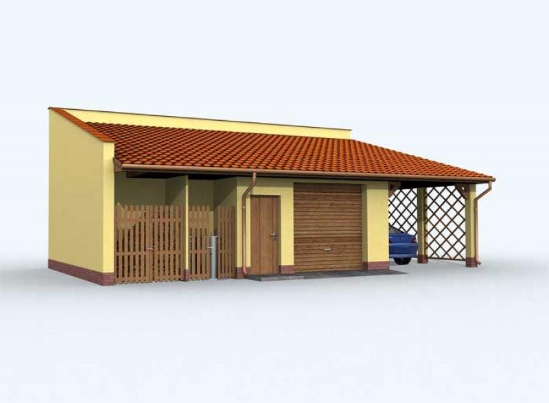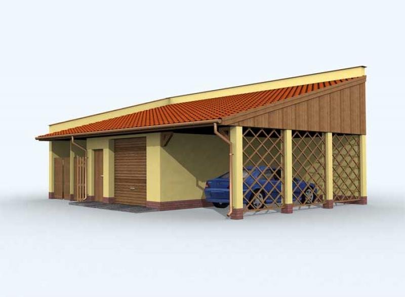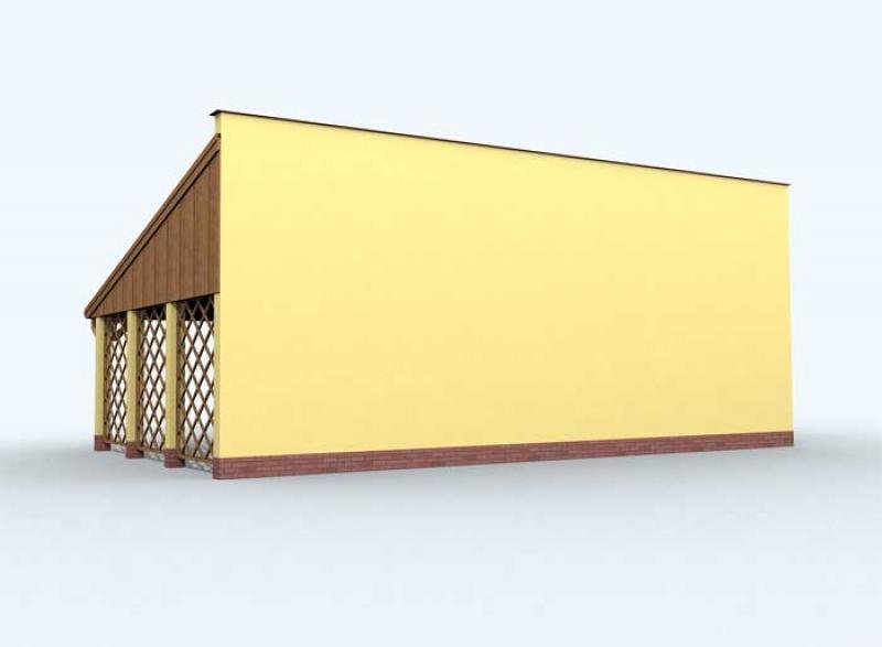 Budynek gospodarczy, wolnostojący. Projekt składa się z części architektonicznej, konstrukcyjnej i wewnętrznej instalacji elektrycznej. W projekcie załączone są podstawowe zestawienie stali, drewna i stolarki okienno-drzwiowej. Do projektu dołączamy bezpłatną zgodę na wprowadzenie zmian, oświadczenie projektantów o wykonaniu projektu zgodnie z obowiązującymi normami i przepisami oraz kserokopie uprawnień projektantów wraz z aktualnym wpisem do izby. W przypadku zamówienia projektu w technologii lekkiej, drewnianej konstrukcji szkieletowej, powierzchnia użytkowa budynku jest o około 7% większa.