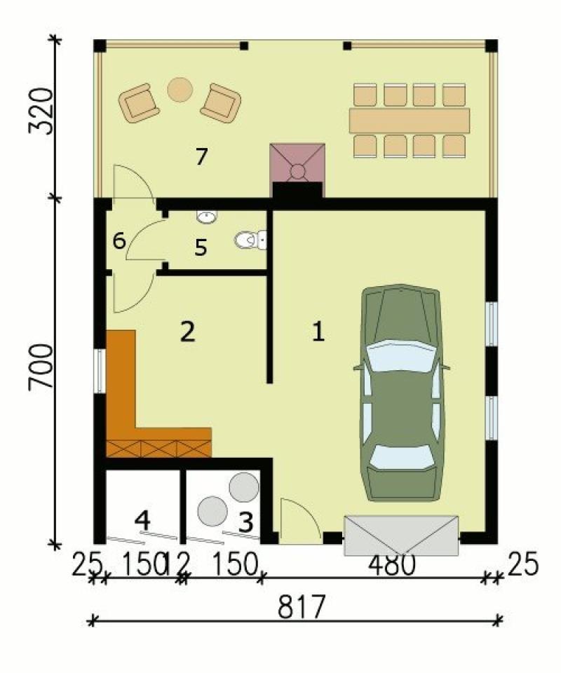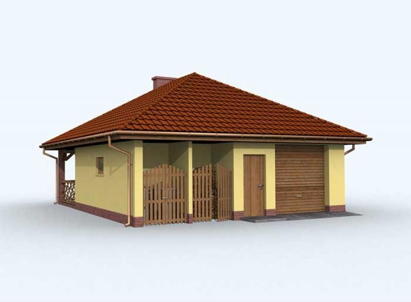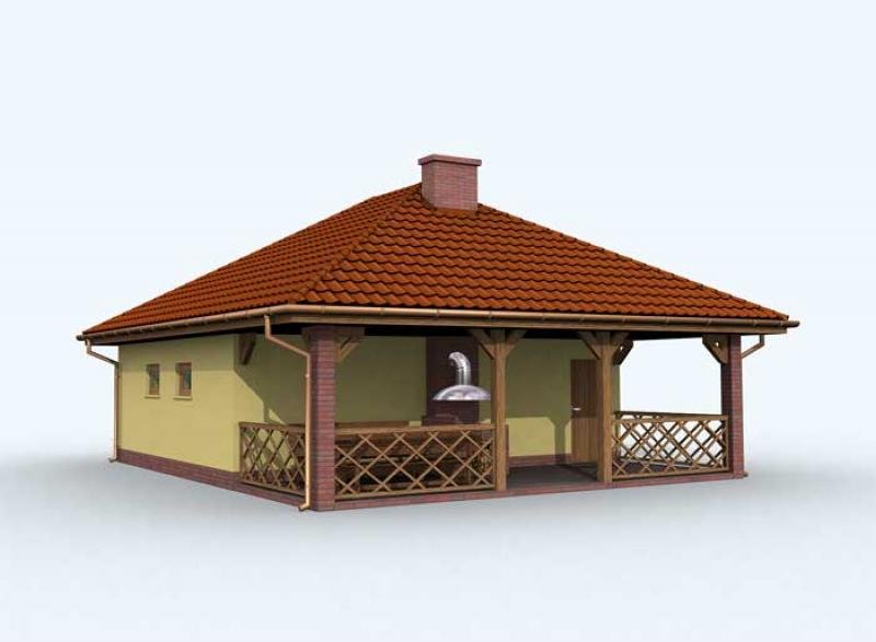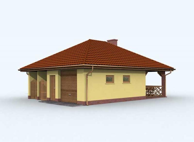 Budynek gospodarczy, wolnostojący. Projekt składa się z części architektonicznej, konstrukcyjnej i wewnętrznej instalacji elektrycznej. W projekcie załączone są podstawowe zestawienie stali, drewna i stolarki okienno-drzwiowej. Do projektu dołączamy bezpłatną zgodę na wprowadzenie zmian, oświadczenie projektantów o wykonaniu projektu zgodnie z obowiązującymi normami i przepisami oraz kserokopie uprawnień projektantów wraz z aktualnym wpisem do izby. W przypadku zamówienia projektu w technologii lekkiej, drewnianej konstrukcji szkieletowej, powierzchnia użytkowa budynku jest o około 7% większa.