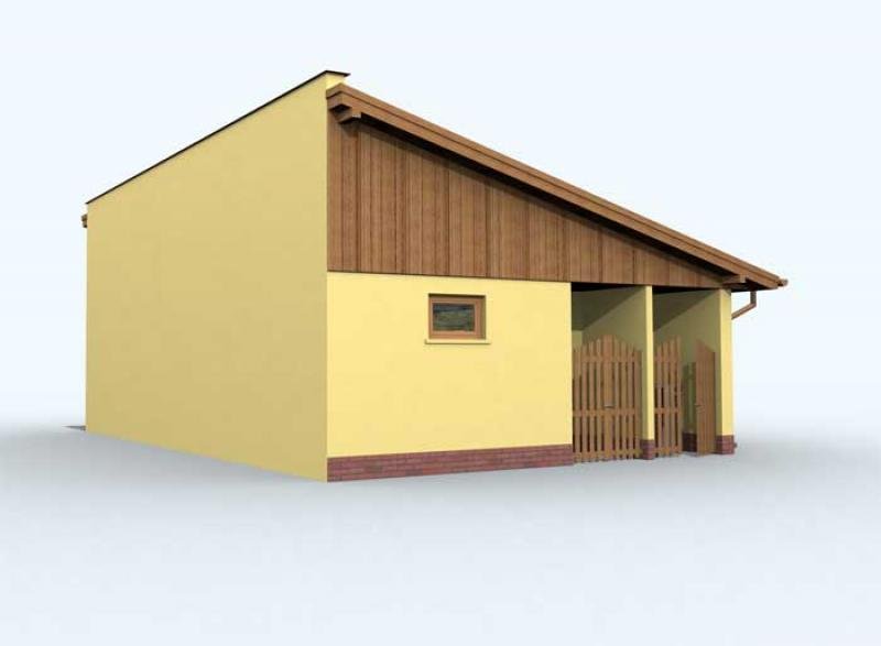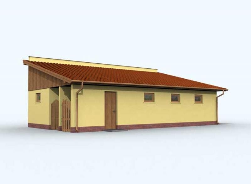 Budynek gospodarczy, wolnostojący. Projekt składa się z części architektonicznej, konstrukcyjnej i wewnętrznej instalacji elektrycznej. W projekcie załączone są podstawowe zestawienie stali, drewna i stolarki okienno-drzwiowej. Do projektu dołączamy bezpłatną zgodę na wprowadzenie zmian, oświadczenie projektantów o wykonaniu projektu zgodnie z obowiązującymi normami i przepisami oraz kserokopie uprawnień projektantów wraz z aktualnym wpisem do izby. W przypadku zamówienia projektu w technologii lekkiej, drewnianej konstrukcji szkieletowej, powierzchnia użytkowa budynku jest o około 7% większa.