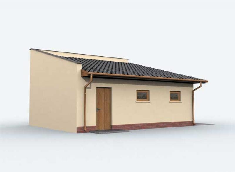 Budynek gospodarczy, wolnostojący. Projekt składa się z części architektonicznej, konstrukcyjnej i wewnętrznej instalacji elektrycznej. W projekcie załączone są podstawowe zestawienie stali, drewna i stolarki okienno-drzwiowej. Do projektu dołączamy bezpłatną zgodę na wprowadzenie zmian, oświadczenie projektantów o wykonaniu projektu zgodnie z obowiązującymi normami i przepisami oraz kserokopie uprawnień projektantów wraz z aktualnym wpisem do izby. W przypadku zamówienia projektu w technologii lekkiej, drewnianej konstrukcji szkieletowej, powierzchnia użytkowa budynku jest o około 7% większa.