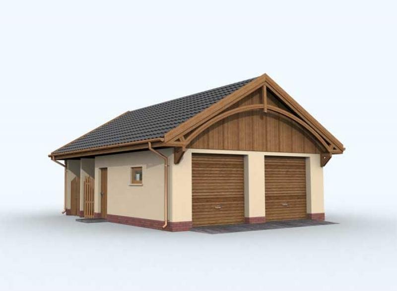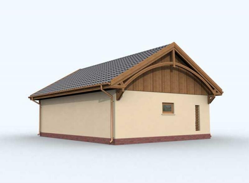 Budynek gospodarczy, wolnostojący. Projekt składa się z części architektonicznej, konstrukcyjnej i wewnętrznej instalacji elektrycznej. W projekcie załączone są podstawowe zestawienie stali, drewna i stolarki okienno-drzwiowej. Do projektu dołączamy bezpłatną zgodę na wprowadzenie zmian, oświadczenie projektantów o wykonaniu projektu zgodnie z obowiązującymi normami i przepisami oraz kserokopie uprawnień projektantów wraz z aktualnym wpisem do izby. W przypadku zamówienia projektu w technologii lekkiej, drewnianej konstrukcji szkieletowej, powierzchnia użytkowa budynku jest o około 7% większa.