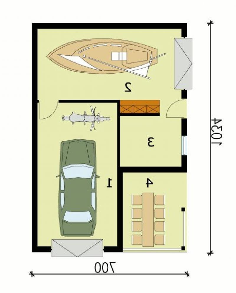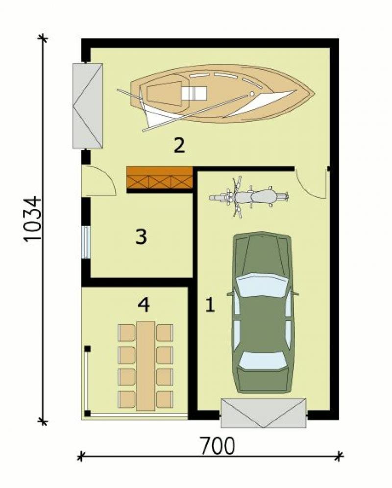 Budynek gospodarczy, wolnostojący. Projekt składa się z części architektonicznej, konstrukcyjnej i wewnętrznej instalacji elektrycznej. W projekcie załączone są podstawowe zestawienie stali, drewna i stolarki okienno-drzwiowej. Do projektu dołączamy bezpłatną zgodę na wprowadzenie zmian, oświadczenie projektantów o wykonaniu projektu zgodnie z obowiązującymi normami i przepisami oraz kserokopie uprawnień projektantów wraz z aktualnym wpisem do izby. W przypadku zamówienia projektu w technologii lekkiej, drewnianej konstrukcji szkieletowej, powierzchnia użytkowa budynku jest o około 7% większa.