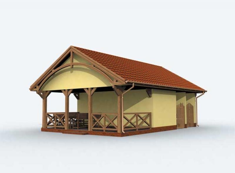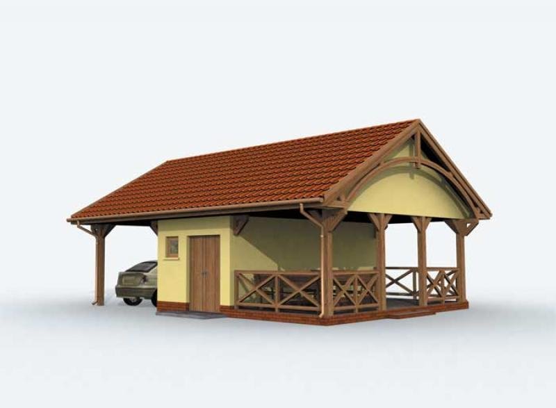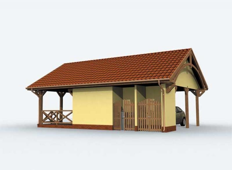 Projekt wiaty garażowej z pom. gospodarczym, werandą, składem na odpady i drewno. Projekt składa się z czterech egzemplarzy a w tym części architektonicznej, konstrukcyjnej i instalacji wewnętrznej elektrycznej. W projekcie załączone są podstawowe zestawienie stali, drewna i stolarki okienno-drzwiowej. Do projektu dołączamy bezpłatną zgodę na wprowadzenie zmian, oświadczenie projektantów o wykonaniu projektu zgodnie z obowiązującymi normami i przepisami oraz kserokopie uprawnień projektantów wraz z aktualnym wpisem do izby