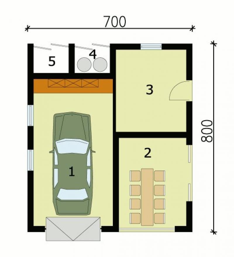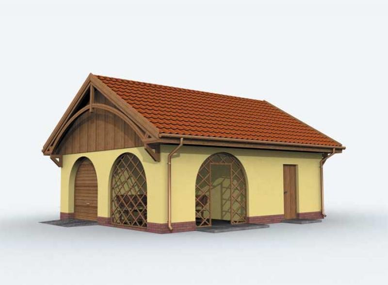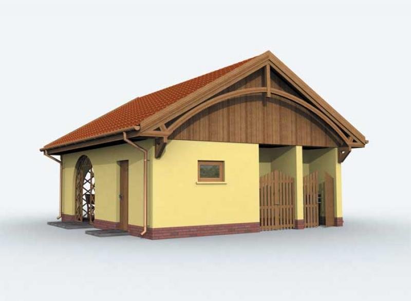 Budynek gospodarczy, wolnostojący. Projekt składa się z części architektonicznej, konstrukcyjnej i wewnętrznej instalacji elektrycznej. W projekcie załączone są podstawowe zestawienie stali, drewna i stolarki okienno-drzwiowej. Do projektu dołączamy bezpłatną zgodę na wprowadzenie zmian, oświadczenie projektantów o wykonaniu projektu zgodnie z obowiązującymi normami i przepisami oraz kserokopie uprawnień projektantów wraz z aktualnym wpisem do izby. W przypadku zamówienia projektu w technologii lekkiej, drewnianej konstrukcji szkieletowej, powierzchnia użytkowa budynku jest o około 7% większa.