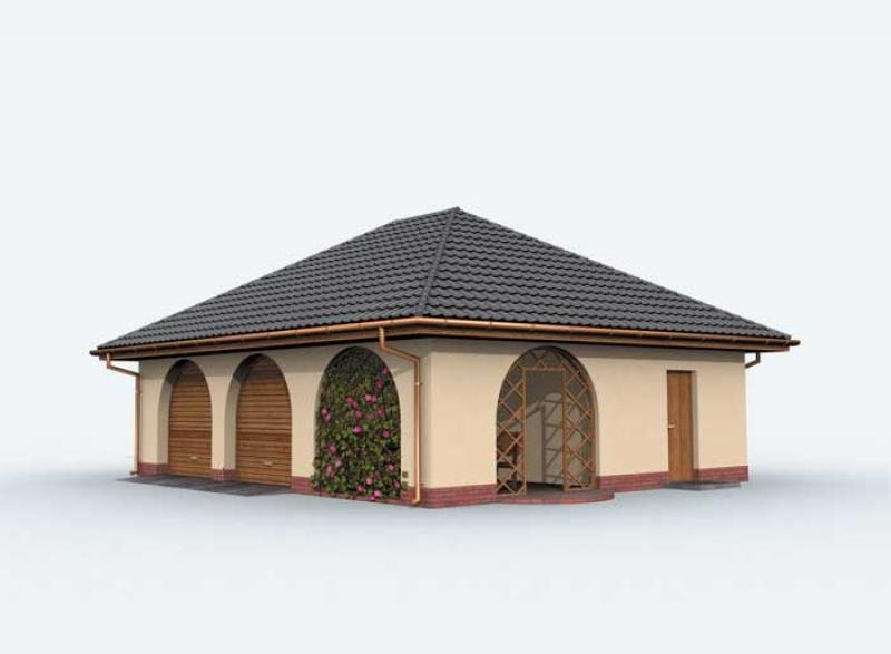 Garaż dwustanowiskowy z pom. gospodarczym,werandą, składem na odpady i drewno kominkowe. Projekt składa się z czterech egzemplarzy a w tym części architektonicznej, konstrukcyjnej i instalacji wewnętrznej elektrycznej. W projekcie załączone są podstawowe zestawienie stali, drewna i stolarki okienno-drzwiowej. Do projektu dołączamy bezpłatną zgodę na wprowadzenie zmian, oświadczenie projektantów o wykonaniu projektu zgodnie z obowiązującymi normami i przepisami oraz kserokopie uprawnień projektantów wraz z aktualnym wpisem do izby.