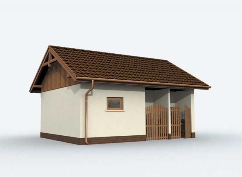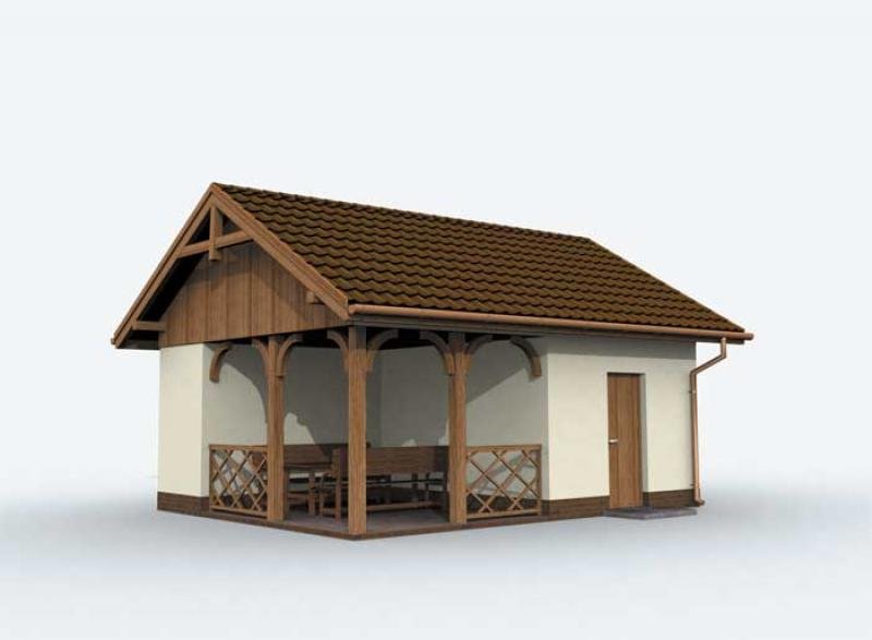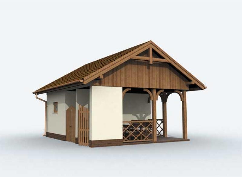 Budynek gospodarczy wolnostojący, parterowy z pomieszczeniem gospodarczym, werandą, składem na odpady i drewno kominkowe.