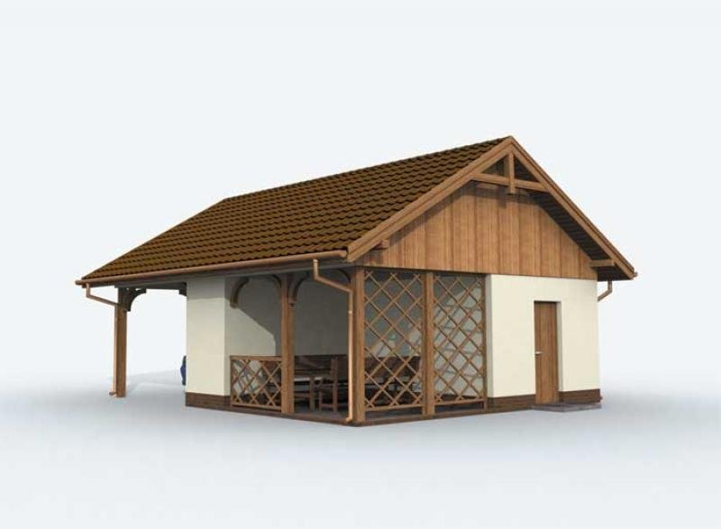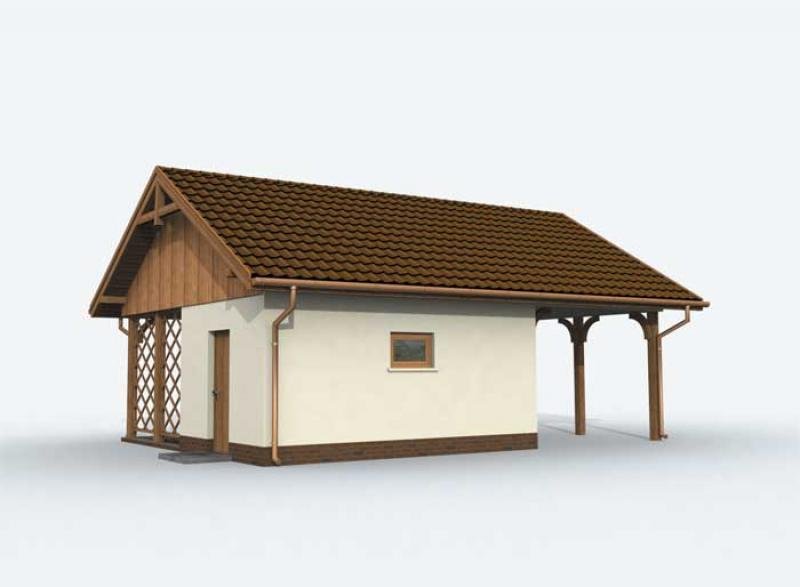 Budynek gospodarczy, wolnostojący. Projekt składa się z części architektonicznej, konstrukcyjnej i wewnętrznej instalacji elektrycznej. W projekcie załączone są podstawowe zestawienie stali, drewna i stolarki okienno-drzwiowej. Do projektu dołączamy bezpłatną zgodę na wprowadzenie zmian, oświadczenie projektantów o wykonaniu projektu zgodnie z obowiązującymi normami i przepisami oraz kserokopie uprawnień projektantów wraz z aktualnym wpisem do izby. W przypadku zamówienia projektu w technologii lekkiej, drewnianej konstrukcji szkieletowej, powierzchnia użytkowa budynku jest o około 7% większa.
