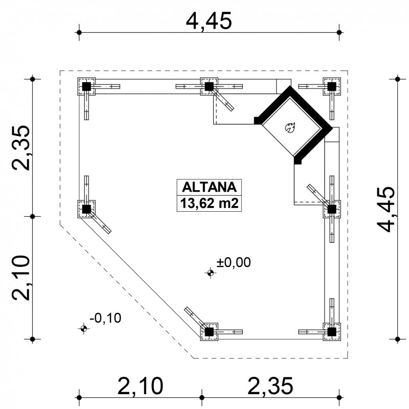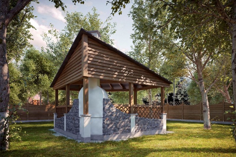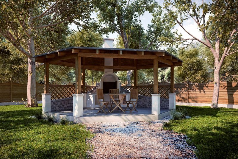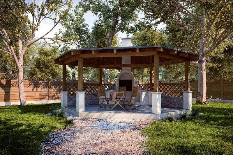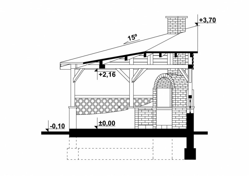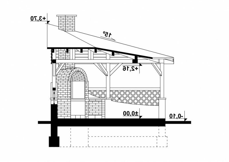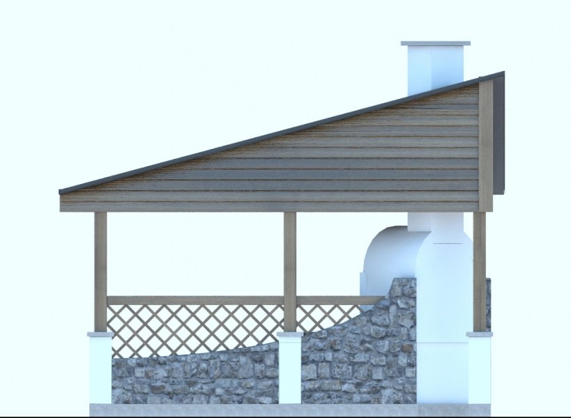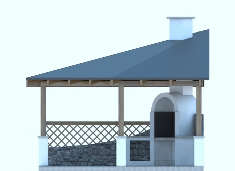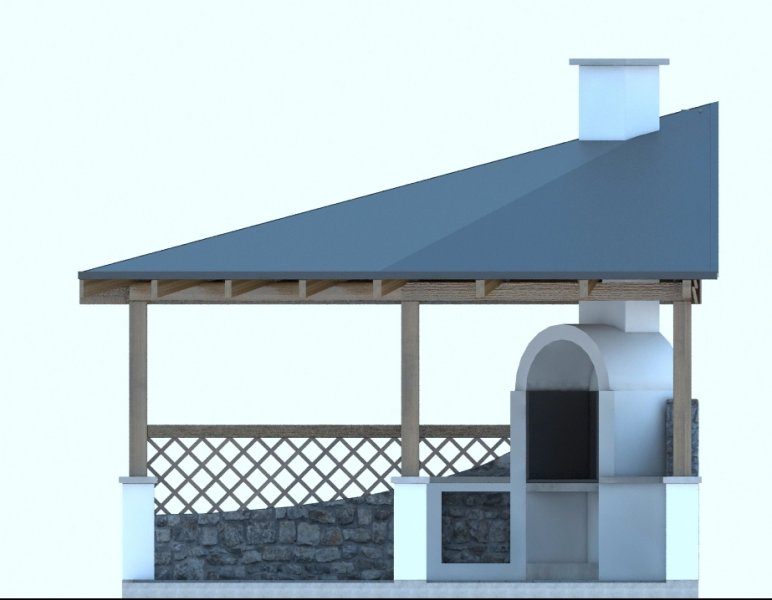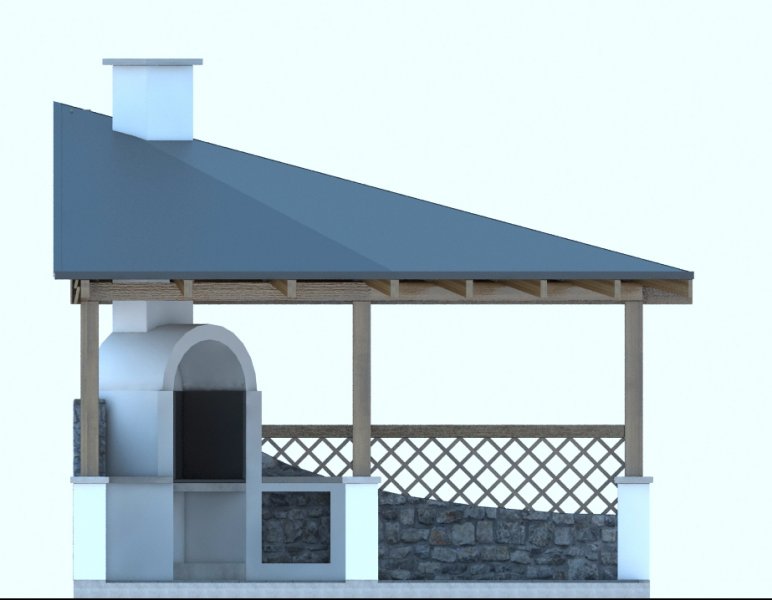 Projekt altany ogrodowej z grillem. Do projektu dołączone jest zestawienie: podstawowych materiałów konstrukcyjnych i więźby dachowej, jak równieżbezpłatna zgoda na dokonanie zmian.