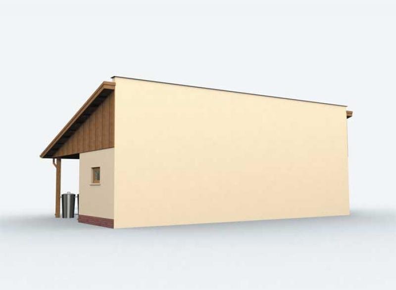 Budynek gospodarczy, wolnostojący. Projekt składa się z części architektonicznej, konstrukcyjnej i wewnętrznej instalacji elektrycznej. W projekcie załączone są podstawowe zestawienie stali, drewna i stolarki okienno-drzwiowej. Do projektu dołączamy bezpłatną zgodę na wprowadzenie zmian, oświadczenie projektantów o wykonaniu projektu zgodnie z obowiązującymi normami i przepisami oraz kserokopie uprawnień projektantów wraz z aktualnym wpisem do izby. W przypadku zamówienia projektu w technologii lekkiej, drewnianej konstrukcji szkieletowej, powierzchnia użytkowa budynku jest o około 7% większa.