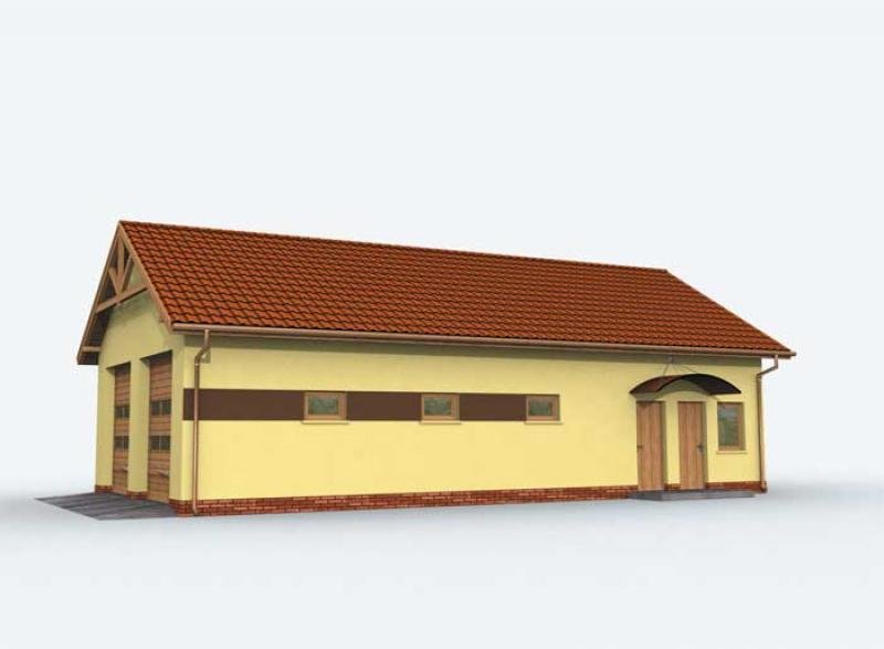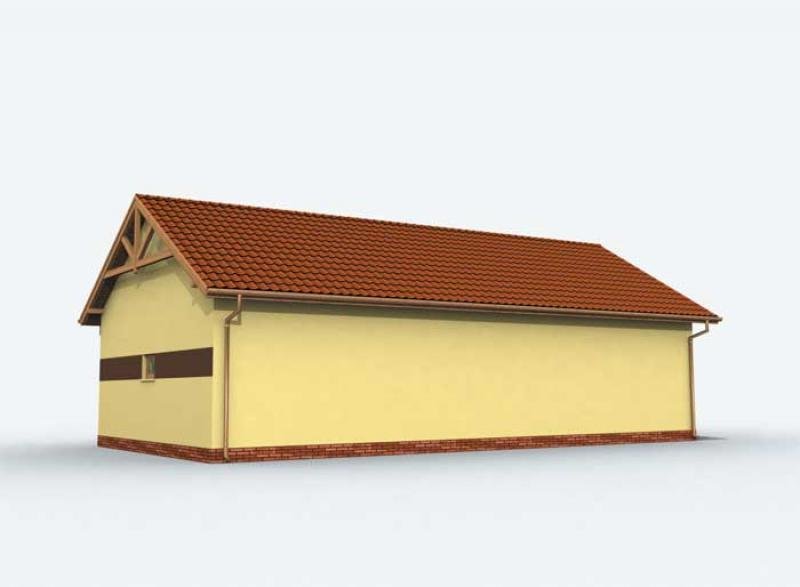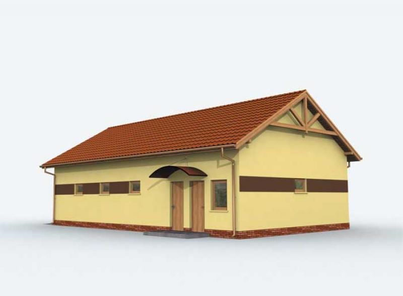 Budynek gospodarczy, wolnostojący. Projekt składa się z części architektonicznej, konstrukcyjnej i wewnętrznej instalacji elektrycznej. W projekcie załączone są podstawowe zestawienie stali, drewna i stolarki okienno-drzwiowej. Do projektu dołączamy bezpłatną zgodę na wprowadzenie zmian, oświadczenie projektantów o wykonaniu projektu zgodnie z obowiązującymi normami i przepisami oraz kserokopie uprawnień projektantów wraz z aktualnym wpisem do izby. W przypadku zamówienia projektu w technologii lekkiej, drewnianej konstrukcji szkieletowej, powierzchnia użytkowa budynku jest o około 7% większa.