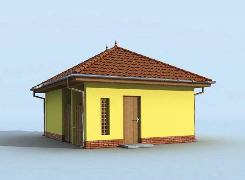 Budynek gospodarczy, wolnostojący. Projekt składa się z części architektonicznej, konstrukcyjnej i wewnętrznej instalacji elektrycznej. W projekcie załączone są podstawowe zestawienie stali, drewna i stolarki okienno-drzwiowej. Do projektu dołączamy bezpłatną zgodę na wprowadzenie zmian, oświadczenie projektantów o wykonaniu projektu zgodnie z obowiązującymi normami i przepisami oraz kserokopie uprawnień projektantów wraz z aktualnym wpisem do izby. W przypadku zamówienia projektu w technologii lekkiej, drewnianej konstrukcji szkieletowej, powierzchnia użytkowa budynku jest o około 7% większa.