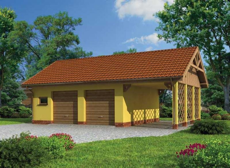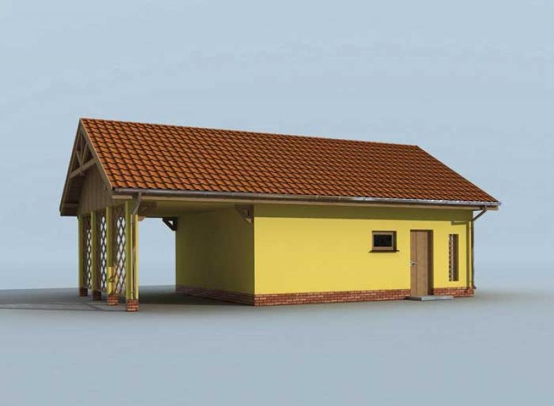 Budynek gospodarczy, wolnostojący. Projekt składa się z części architektonicznej, konstrukcyjnej i wewnętrznej instalacji elektrycznej. W projekcie załączone są podstawowe zestawienie stali, drewna i stolarki okienno-drzwiowej. Do projektu dołączamy bezpłatną zgodę na wprowadzenie zmian, oświadczenie projektantów o wykonaniu projektu zgodnie z obowiązującymi normami i przepisami oraz kserokopie uprawnień projektantów wraz z aktualnym wpisem do izby. W przypadku zamówienia projektu w technologii lekkiej, drewnianej konstrukcji szkieletowej, powierzchnia użytkowa budynku jest o około 7% większa.