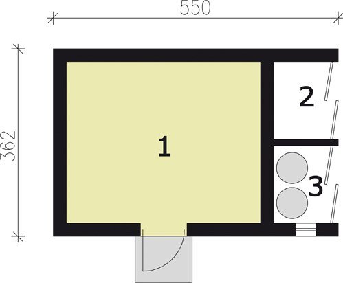 Budynek posiada dodatkowe pomieszczenie skład na drewno i odpady.