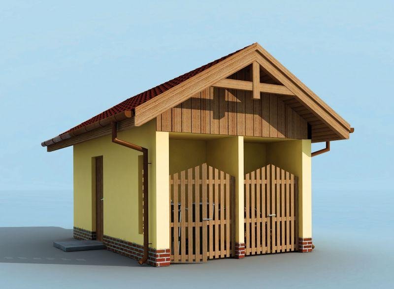 Budynek gospodarczy w technologii szkieletowej, wolnostojący, parterowy.