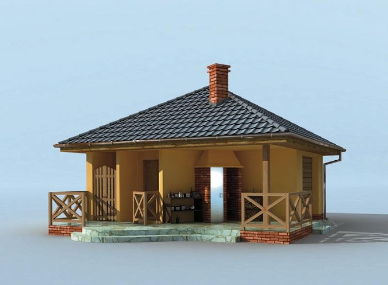 Budynek gospodarczy, wolnostojący. Projekt składa się z części architektonicznej, konstrukcyjnej i wewnętrznej instalacji elektrycznej. W projekcie załączone są podstawowe zestawienie stali, drewna i stolarki okienno-drzwiowej. Do projektu dołączamy bezpłatną zgodę na wprowadzenie zmian, oświadczenie projektantów o wykonaniu projektu zgodnie z obowiązującymi normami i przepisami oraz kserokopie uprawnień projektantów wraz z aktualnym wpisem do izby. W przypadku zamówienia projektu w technologii lekkiej, drewnianej konstrukcji szkieletowej, powierzchnia użytkowa budynku jest o około 7% większa.