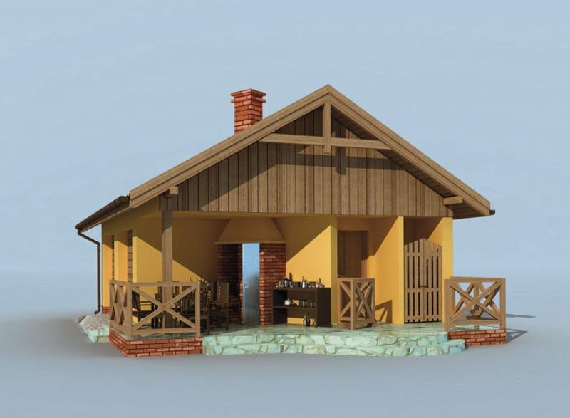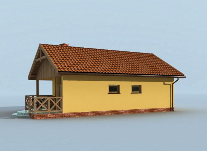 Budynek gospodarczy, wolnostojący. Projekt składa się z części architektonicznej, konstrukcyjnej i wewnętrznej instalacji elektrycznej. W projekcie załączone są podstawowe zestawienie stali, drewna i stolarki okienno-drzwiowej. Do projektu dołączamy bezpłatną zgodę na wprowadzenie zmian, oświadczenie projektantów o wykonaniu projektu zgodnie z obowiązującymi normami i przepisami oraz kserokopie uprawnień projektantów wraz z aktualnym wpisem do izby. W przypadku zamówienia projektu w technologii lekkiej, drewnianej konstrukcji szkieletowej, powierzchnia użytkowa budynku jest o około 7% większa.