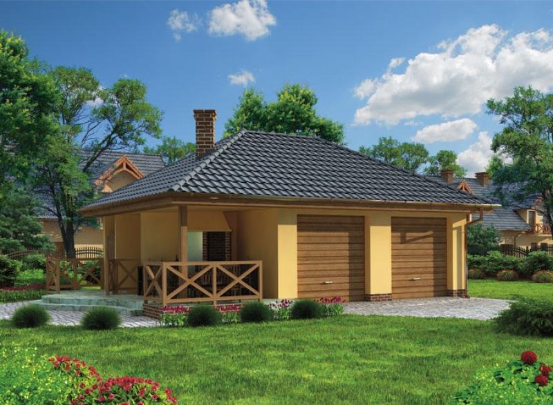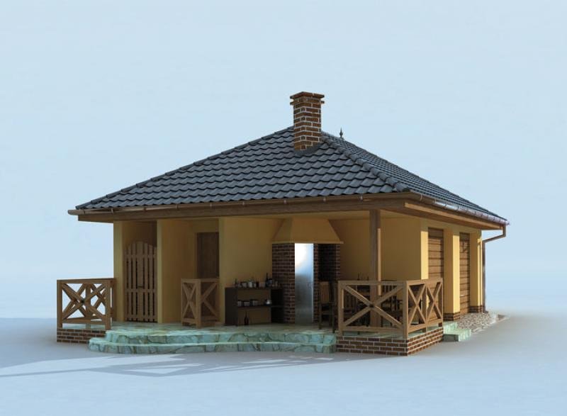 Budynek gospodarczy, wolnostojący. Projekt składa się z części architektonicznej, konstrukcyjnej i wewnętrznej instalacji elektrycznej. W projekcie załączone są podstawowe zestawienie stali, drewna i stolarki okienno-drzwiowej. Do projektu dołączamy bezpłatną zgodę na wprowadzenie zmian, oświadczenie projektantów o wykonaniu projektu zgodnie z obowiązującymi normami i przepisami oraz kserokopie uprawnień projektantów wraz z aktualnym wpisem do izby. W przypadku zamówienia projektu w technologii lekkiej, drewnianej konstrukcji szkieletowej, powierzchnia użytkowa budynku jest o około 7% większa.